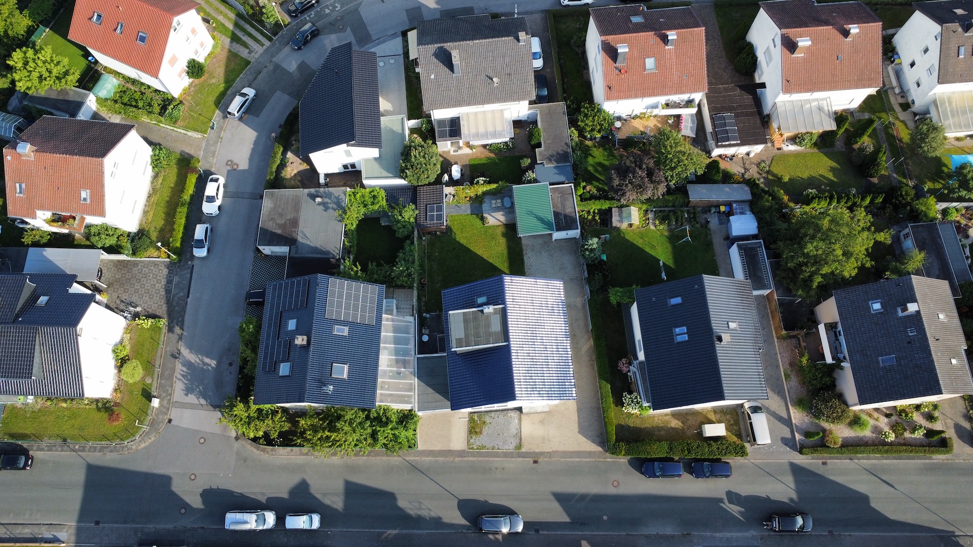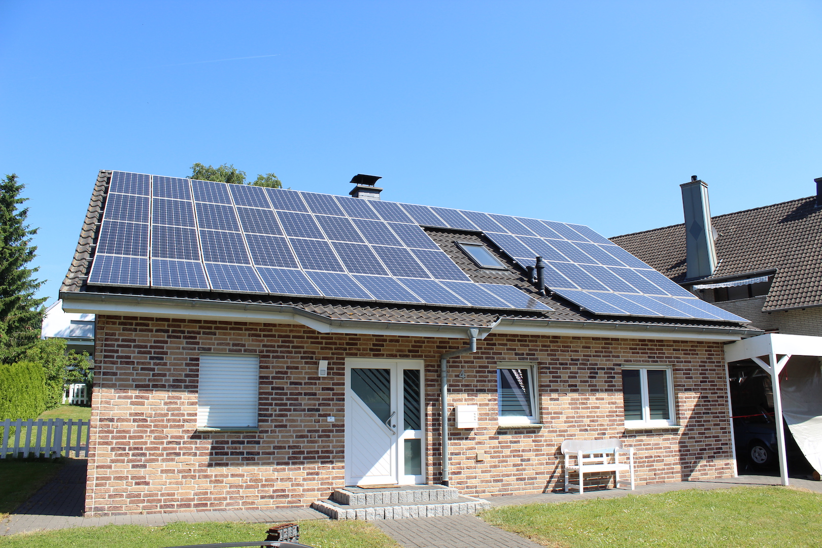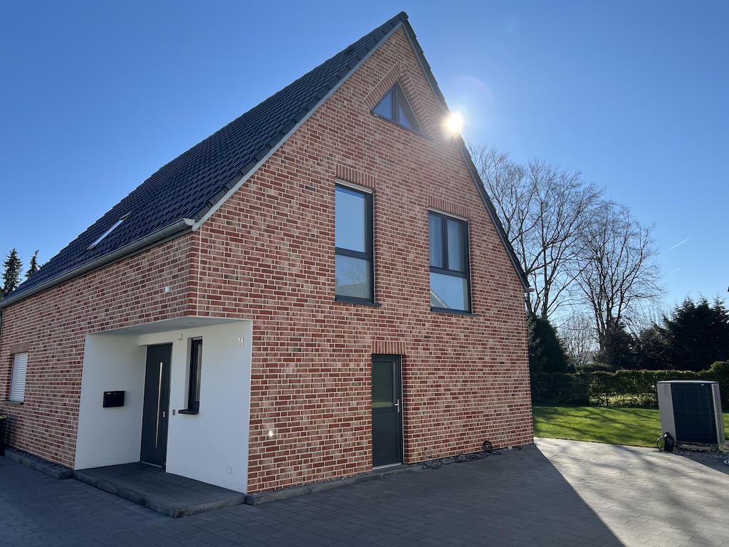 Modernes Einfamilienhaus mit Solar und Luftwärmepumpe.