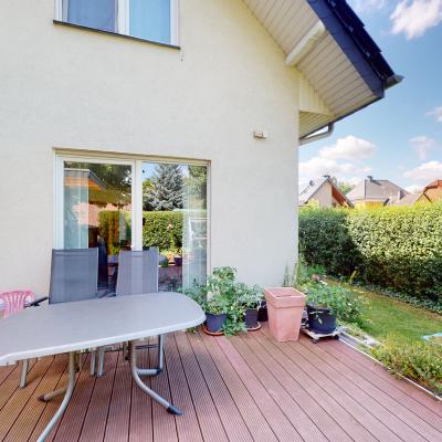 Modernes Einfamilienhaus mit Solar und Luftwärmepumpe.